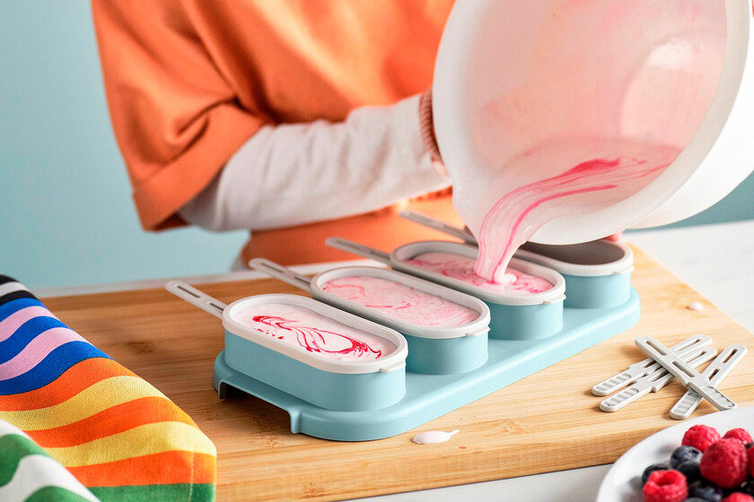 Son sencillos de usar, ya que solo tenemos que meter los palos (se incluyen ocho unidades reutilizables), verter la mezcla y colocar la tapa. Los dejamos en el congelador hasta que estén bien fríos y ya podemos proceder a retirarlos. Como es de silicona flexible, esto será tarea fácil, pues bastará con mover un poco los rebordes y despegarlos para sacarlos.