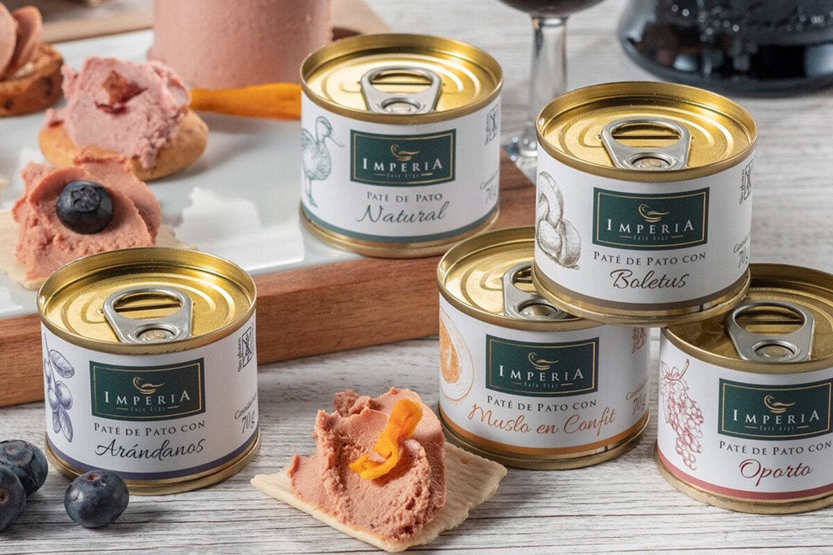Luego tenemos el paté de pato con Oporto que combina la intensidad del hígado con el del dulzor de este vino generoso y afrutado. Es cremoso y las notas dulces aportan complejidad que hace que sea muy aromático. Por otro lado, tenemos el de pato con boletus, el cual presenta intensos sabores a boletus silvestres que se entrelazan con la intensidad del hígado. Es perfecto para acompañar con quesos y untar en tostaditas.