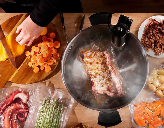 Usarla es muy sencillo, pues una vez envasados los alimentos, los introducimos en una olla con agua y lo anclamos a la pared de la olla. Tras esto, solo hay que elegir la temperatura y el tiempo, dejando que los alimentos se cocinen a su ritmo, pues no es necesario estar pendiente. Algunas preparaciones pueden llevar horas, pero los resultados son una explosión de sabor y aroma en nuestras recetas que no se consigue tan fácilmente con el resto de los electrodomésticos.