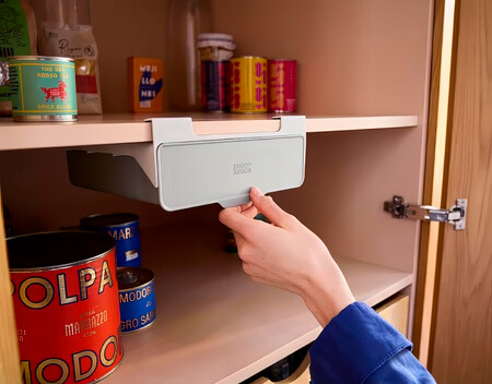 No es más que un sencillo cajón que se coloca bajo las baldas de los armarios. Pero lo que ganaremos en almacenamiento para cosas pequeñas lo notaremos desde el minuto uno. Pues es un espacio perfecto para almacenar desde conservas de marisco, hasta bolsas de basura e incluso condimentos de todo tipo, o hasta accesorios de limpieza de cocina como estropajos o bayetas de recambio.