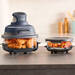 Se utiliza muy fácilmente, pues solo tenemos que poner el cabezal -lo que es la freidora- sobre los recipientes montados en la base y configurar el tiempo y modo de cocción. Tenemos varios a elegir: rostizar, recalentar, freír o mantener caliente; al ser de vidrio en todo momento veremos el estado de los alimentos, por si necesitásemos detener cocinado. Una vez acabemos podemos servir lo que hayamos cocinado directamente en la mesa, como si fuese una fuente de horno.