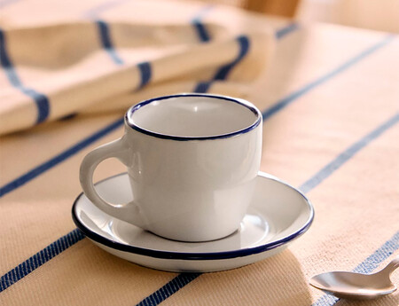 Son de gres resistentes a las altas temperaturas, y aunque mayormente son blancas, el ribete azul aporta mucha personalidad. Los acabados brillantes le dan ese toque clásico que gusta en las tazas de espresso y el asa es cómoda para sujetarla con un dedo sin que sea molestia. Además de mantener más la temperatura, también son más resistentes y durables, se pueden lavar en el lavavajillas sin problema.