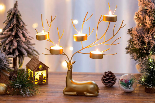 Los cuernos del reno son alargados y en ellos encontramos pequeños portavelas en los que poner las típicas velas de té. Es decir, esas pequeñas con base de aluminio que duran varias horas y que podemos elegir aromatizadas o simplemente para iluminar la mesa de forma tenue. Y que en Amazon encontramos el pack de 90 unidades por 16,99 euros.