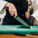 El mango es de madera, tratado para que no se agriete y la hoja está engarzada en él para evitar que se separe. Su forma es ergonómica para que sujetarlo resulte cómodo y la mano no adopte posturas incómodas. Para mantenerlo en perfecto estado, este cuchillo ha de lavarse a mano y secarse con un paño de algodón para que la humedad no lo estropee.