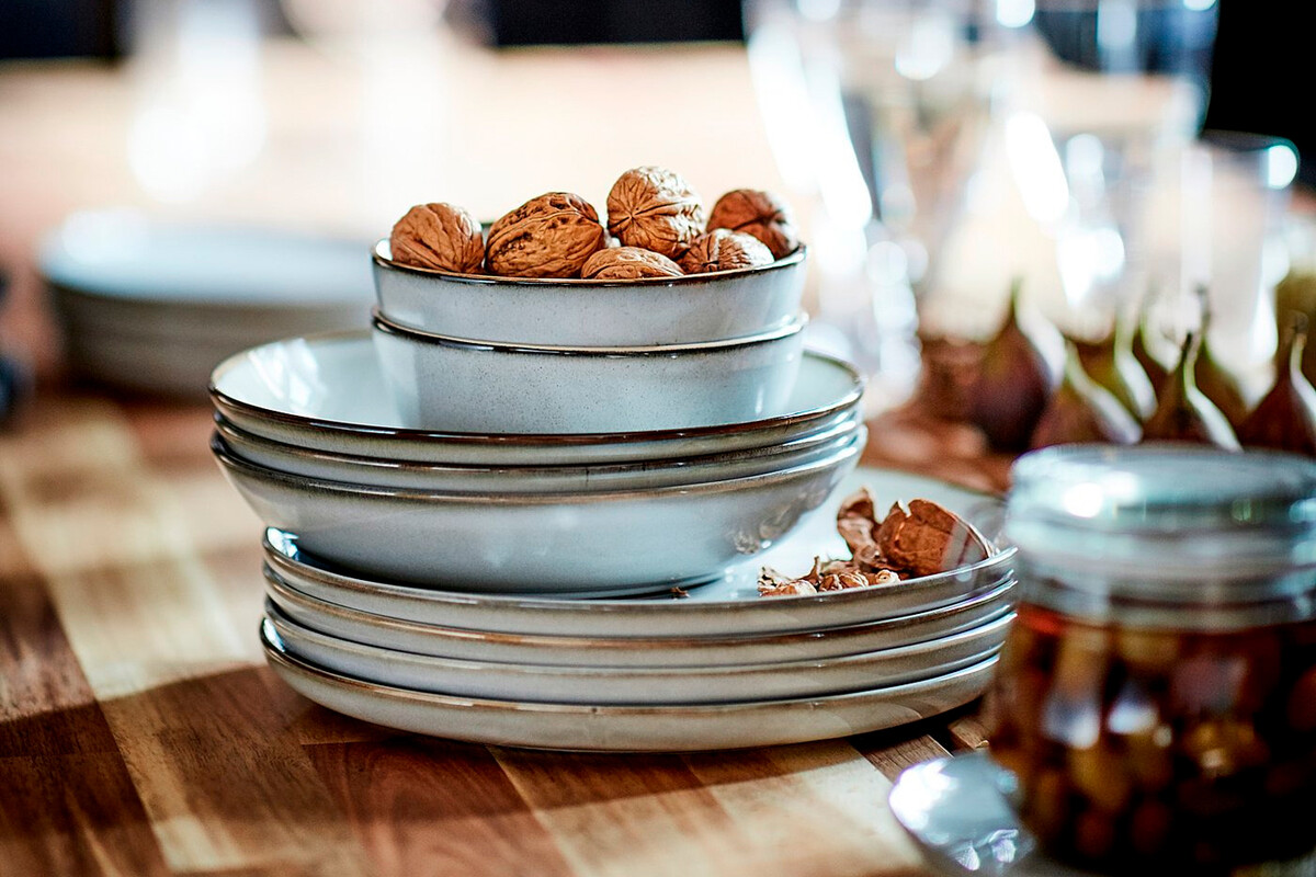 Si algo aporta esta vajilla a cualquier ocasión, es un toque rústico el cual no pasa de moda cuando hablamos de menaje de mesa. Fabricada en gres y vidriado, esta vajilla puede convertirse en el centro de atención fácilmente gracias a sus acabados en gris con un reborde en marrón oscuro que crea un bonito contraste.