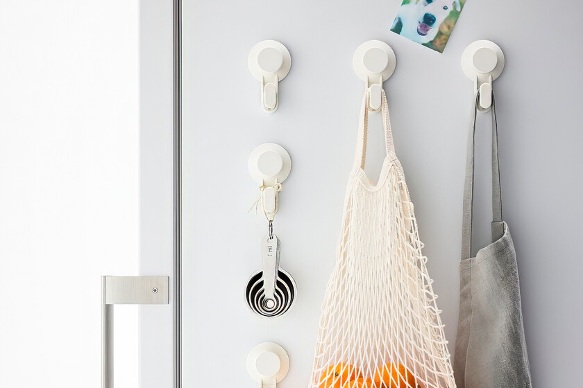 Como indican en la web de Ikea para quitarlos o cambiarlos de sitio, solo tenemos que meter una tarjeta de crédito o algo similar entre la ventosa y la pared. Esto liberará el gancho y podemos colocarlo en otra superficie lisa. Basta con presionar con fuerza, cuando escuchemos un ruido sordo sabremos que el gancho está en su sitio y ahí se quedará.