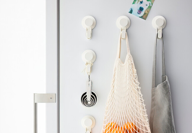 Como indican en la web de Ikea para quitarlos o cambiarlos de sitio, solo tenemos que meter una tarjeta de crédito o algo similar entre la ventosa y la pared. Esto liberará el gancho y podemos colocarlo en otra superficie lisa. Basta con presionar con fuerza, cuando escuchemos un ruido sordo sabremos que el gancho está en su sitio y ahí se quedará.