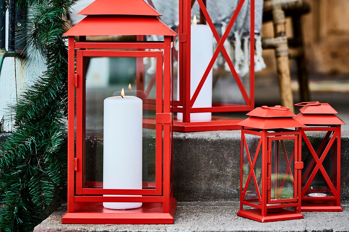 Se trata del farolillo de la colección VINTERFINT el cual está hecho de vidrio y acero, el cual ha sido pintado en rojo para que vaya en consonancia al espíritu navideño. Es sencillo pero bonito, y se puede colocar sin problema sobre la mesa. Dispone de una cómoda asa para moverlo de un espacio a otro, por si no siempre queremos tenerlo sobre la mesa.