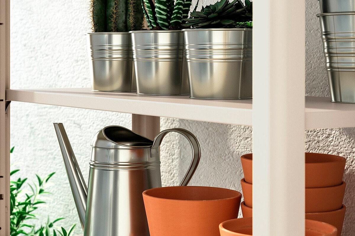 Disponer de almacenamiento en zonas como el jardín o la terraza es una ventaja, especialmente si tenemos plantas o macetas. No se necesita mucho en realidad, solo un buen mueble que sume en suficiente espacio para guardar desde macetas hasta regaderas o menaje para la barbacoa. Y este de Ikea puede ser una buena opción: es de metal y su precio es de 158,99 euros.