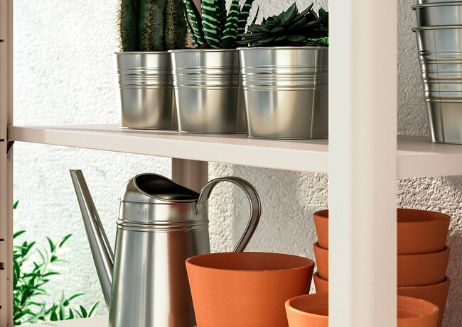 Disponer de almacenamiento en zonas como el jardín o la terraza es una ventaja, especialmente si tenemos plantas o macetas. No se necesita mucho en realidad, solo un buen mueble que sume en suficiente espacio para guardar desde macetas hasta regaderas o menaje para la barbacoa. Y este de Ikea puede ser una buena opción: es de metal y su precio es de 158,99 euros.