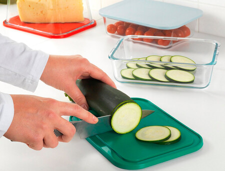 Estos sencillos tuppers de la colección Ikea 365+ por solamente 4,49 euros la unidad son compatibles con las tablas de cortar. Con ellos no solo podremos almacenar alimentos herméticamente con la tapa que ya viene incluida, sino que nos permite almacenarlos en la nevera o recalentar sobras en el microondas fácilmente.