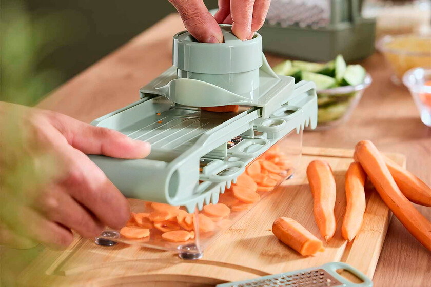 En ninguna cocina debería faltar un cacharro de este tipo, ya que nos permite realizar varias preparaciones en un solo accesorio. Así pues, con este modelo de Lidl podemos rallar cítricos, cortar en rodajas, rallar queso grueso o fino y cortar en juliana. Todo de forma segura, sencilla y el resultado caerá directamente en el recipiente para que luego podamos añadirlo a las recetas.