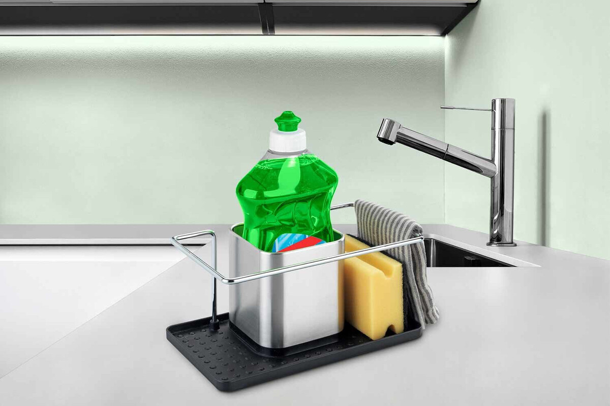 En él podremos dejar desde el estropajo en uso hasta la botella de jabón para que tampoco esté dando vueltas por la cocina. Añade un extra de limpieza al evitar que los restos de agua mojen la encimera gracias a su bandeja inferior desmontable. La cual es de plástico para que tampoco se estropee con la humedad.