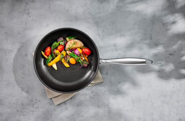 En ella podemos cocinar desde una tortilla de patatas con o sin cebolla, más o menos hecha. Pero también elaborar salteados, sellar carnes, preparar un tataki de atún con sésamo, o hacer un sencillo huevo frito. Es ligera y el mango ergonómico, por lo que ofrece un manejo cómodo y sencillo, incluso con una sola mano.