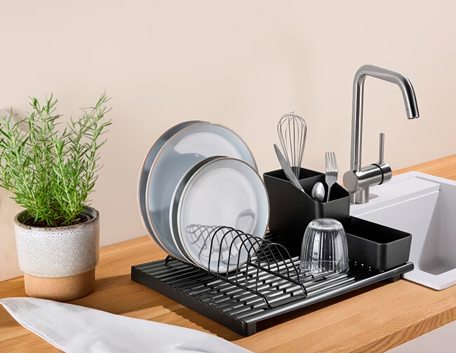 Evitará que la encimera acabe mojada y suma en espacio para secar la vajilla entera