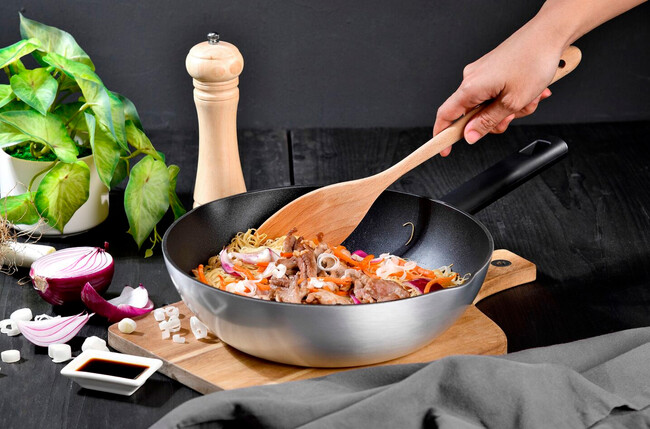 Muchos de nuestras recetas asiáticas favoritas -chow mein, yakisoba e incluso el pollo teriyaki- requieren menaje especializado, es decir: una sartén tipo wok. Y este modelo de Lidl es de aluminio forjado y tiene 28 cm de diámetro. Esta sartén está preparada para estar expuestos a fuentes de calor durante mucho tiempo y es compatible con todo tipo de cocinas, inducción incluida.