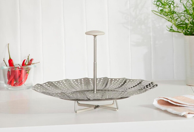 La comida cocinada al vapor es de lo más saludable que nos podemos meter entre pecho y espalda. No solo porque se cocina sin grasas, sino porque los alimentos conservan mejor sus nutrientes. Para ello no necesitamos más que este cacharro de Amazon Basics que cuesta 6,26 euros y se pliega para ahorrar espacio de almacenaje.