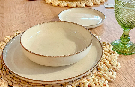 Las modas cambian, incluso dentro de la cocina. Pues, hace años se llevaban las vajillas con estampados recargados o las de vidrio tipo Duralex. Pero hoy en día son populares las que tienen diseño rústico como esta de Alcampo disponible por 49,99 euros y está fabricada en porcelana.