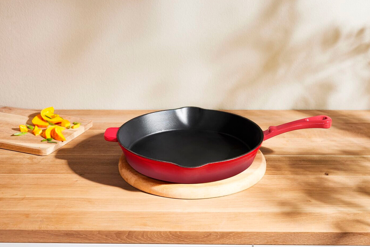 Si por algo nos gusta Lidl es por la variedad de productos y la frecuencia con la que renuevan su catálogo. Y es que próximamente tendremos disponible una sartén de hierro fundido en la cual podremos cocinar en todo tipo de cocinas e incluso en el horno. Y su precio será de 27,99 euros, pudiendo elegir entre color rojo o negro en el esmaltado.