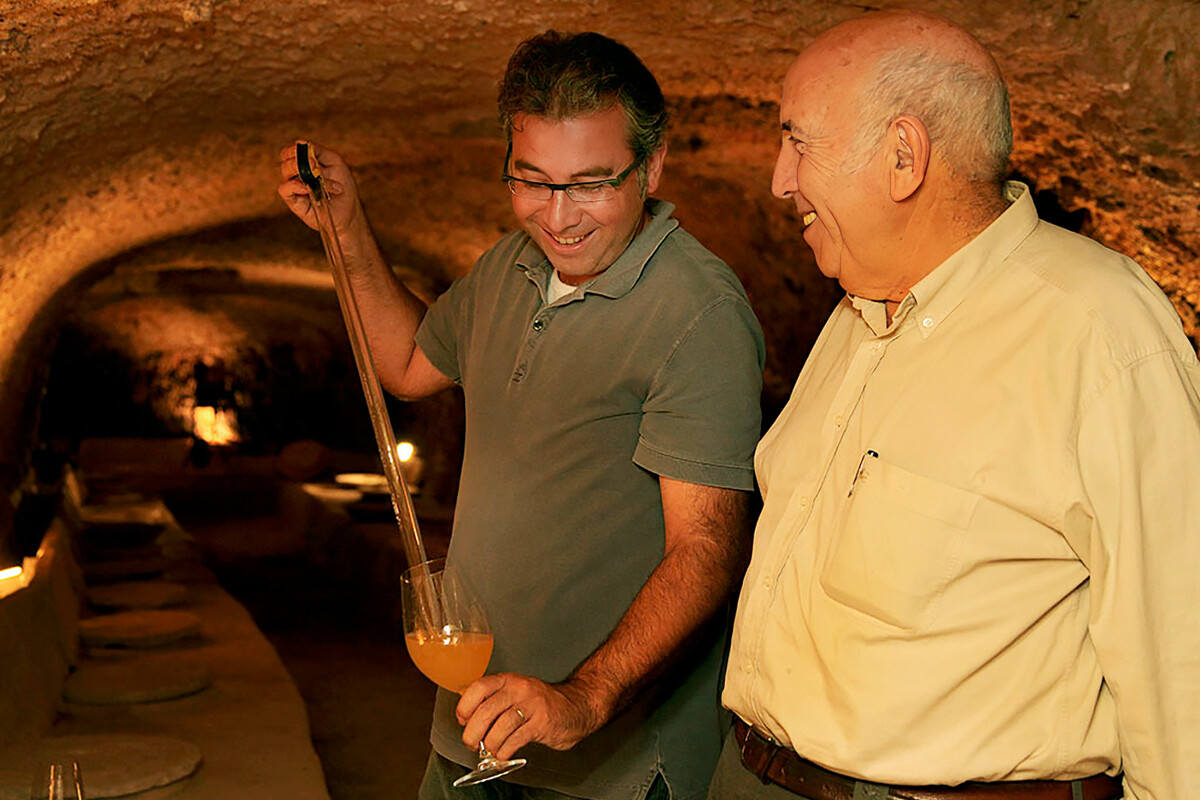 Donde este tinto rompe los esquemas, sin embargo, es en su paso por bodegas, pues el proceso está más cerca del rosado que de un tinto. Es sometido a maceraciones suaves y cortas, a fermentación en tanques de acero y con una intervención mínima. Mientras que la crianza es de cuatro meses en tinajas de barro enterradas de las cuales algunas son centenarias. Gracias a este método se consigue una oxigenación sutil que no enmascara el carácter del vino, pero sí crea una textura sedosa con una expresión muy pura.