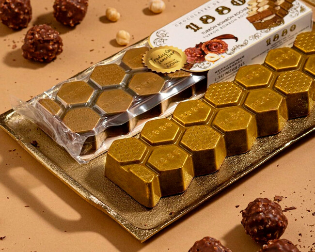 La pastilla sigue el tradicional diseño de la marca en forma de panal, es de chocolate y ha sido decorado con purpurina color oro comestible. Esto pretende imitar al icónico envoltorio de estos bombones, que destacan siempre por el color dorado. Desprende aromas dulces del chocolate con el que está recubierto, así como de avellanas.