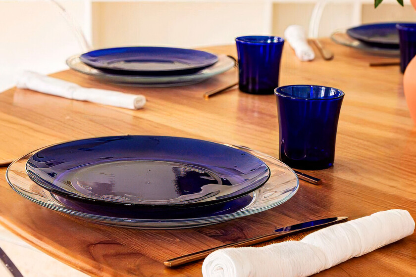 Los colores clásicos siempre han sido el transparente, el azul claro, el verde o incluso el ámbar, siendo estos dos últimos los más populares. Pero como novedad, Duralex lanzó la versión azul marino, una que parece tallada en zafiros y que aporta a la mesa la nostalgia del recuerdo de la infancia, con un toque hasta moderno. En ella, hasta el plato de cuchara más tradicional se verá como una receta moderna.