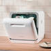 Lo primero a destacar de este lavavajillas mini es que no necesita estar conectado a una toma de agua, ya que viene con un depósito integrado. Pero, si podemos o queremos puede ir conectado perfectamente a una tubería. Dispone de cinco ciclos de limpieza distintos: intensivo, rápido, ECO, cristalería y especial para productos de bebé. Este último limpia y esteriliza los biberones, tetinas y demás cosas para alimentar a nuestro peque.