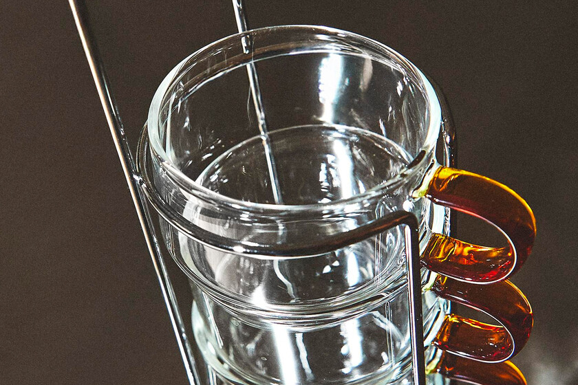 Como hemos dicho no es necesario que sea nada ostentoso ni carísimo, y estas tazas de borosilicato lo demuestran. Son transparentes con el asa en un tono anaranjado que le pone el toque original. En ellas podremos servir espressos, deliciosos cortados e incluso el clásico café bombón. Se pueden lavar sin problema en el lavavajillas y luego colocarlas de nuevo en el cómodo soporte de metal que podemos tener siempre junto a la cafetera.