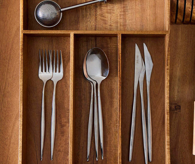 A la hora de ordenar los cajones de los cubiertos, no está de más hacerlo con un poco de estilo. Algo que conseguiremos con este cubertero extensible de Zara Home: es de madera de acacia y su precio es de 29,99 euros. Y nos ayudará a crear un cajón organizado sumando también en decoración.