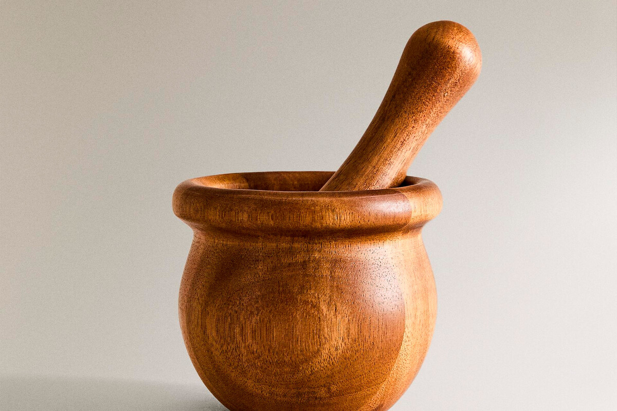 En casa siempre hemos sido tradicionales en cuando al modo de preparar recetas. Y, aunque hoy en día hay alternativas, a la hora de preparar la ñora para la paella o la base del pollo al ajillo usamos el mortero. Un accesorio que no puede faltar en ninguna cocina que se precie y que ahora en Zara Home lo tenemos de auténtica madera de acacia por 17,99 euros.