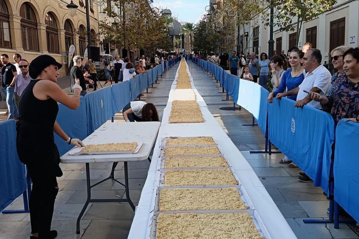La ciudad de Alicante ha batido un récord muy particular este pasado fin de semana preparando la coca de mollitas más larga del mundo en la que han participado 26 panaderías y obradores de la localidad.