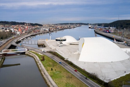Ese pasado fabril, lejos de ser una sombra, se ha integrado en su identidad. Los restos de cargaderos, grúas y naves conviven ahora con paseos ajardinados y espacios culturales que miran al futuro. El Centro Niemeyer, con sus formas curvas y blancas, simboliza esta transformación: una apuesta decidida por la cultura y la modernidad en pleno corazón de la ría.