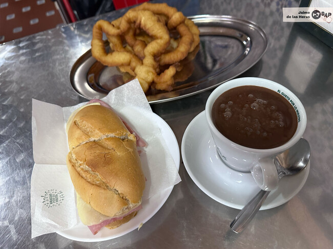 El trajín es constante en la barra, en las mesas del salón y en la terraza, también de bote en bote, donde los desayunos se extienden durante horas y que lo mismo sirven para andar mojando churros en un mitad o en entregarse a los placeres del pitufo mixto.
