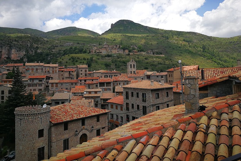 Irregulares son también las calles estrechas que discurren por el pueblo, empedradas como las viviendas tradicionales que apenas tienen una o dos plantas con paramentos de piedra vista o enfoscados, al estilo pirenaico, con cubiertas de teja de la zona de dos o cuatro vertientes. Recorrer sus calles es perderse en una aldea llena de encanto que parece llevarnos a algún cuento o épocas pasadas, un efecto que cobra mayor impacto al contemplar el paisaje que rodea la villa, que parece fundirse con él y regala impresionantes vistas en varios miradores.