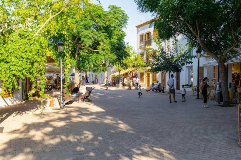 Pasear por Santa Gertrudis es una actividad en sí misma. La plaza principal, peatonal y rodeada de terrazas, invita a sentarse sin prisa, a observar cómo pasa la vida a un ritmo que no tiene nada que ver con el de las zonas más turísticas de la isla.