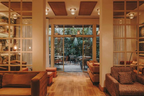 La experiencia se expande mucho más allá de las habitaciones. En la planta baja, el Lobby del hotel funciona como punto de encuentro tanto para huéspedes como para barceloneses. Allí se puede teletrabajar, disfrutar de un desayuno delicioso, relajarse con un cóctel o asistir a eventos como pop-ups y sesiones de música en vivo.