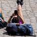 Una peregrina en la Plaza del Obradoiro. ©Camino de Santiago.