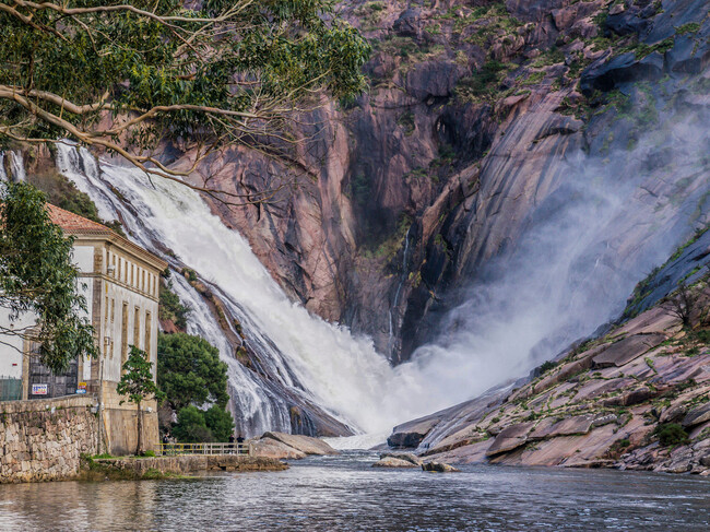 La cascada del Ézaro, como se conoce a esta maravilla natural, está encajada en un entorno rocoso que la hace aún más espectacular. En los meses de más precipitaciones —desde finales de otoño hasta bien entrada la primavera— el caudal del Xallas se dispara. Entonces, el agua cae con una violencia que impresiona. El sonido es ensordecedor y la cortina de gotas se puede sentir a decenas de metros de distancia.