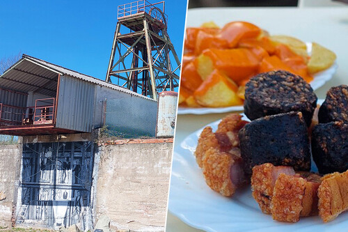 Es un lugar perfecto para un tapeo en buena compañía, con las voces de los niños al fondo y las conversaciones cruzadas de los vecinos, de quienes regresan el fin de semana al pueblo y de los viajeros atraídos por su pasado minero. Hay platos imprescindibles, como las legendarias patatas bravas, bañadas en una salsa secreta cuya receta es un enigma local. Le siguen los torreznos crujientes y el somarro, antesala del protagonista absoluto: el cabrito asado en horno de leña, con la piel tostada y la carne deshaciéndose al primer contacto.