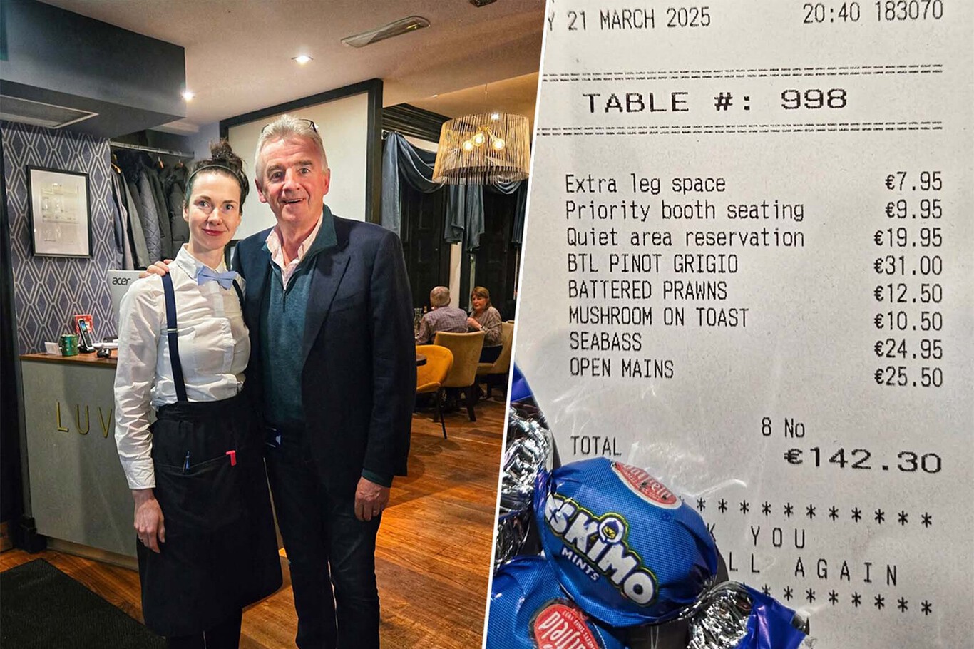 Cuando terminó su comida y pidió la cuenta, O'Leary se encontró con un tique algo peculiar. Además de los platos consumidos, en el desglose aparecían cargos adicionales poco comunes en la hostelería tradicional, pero bastante familiares para cualquiera que haya volado alguna vez con Ryanair.