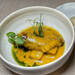 Después llegan los pases de ‘La Tierra y el Fuego’, con pimientos asados al límite acompañados de jugo caramelizado y pilpil, y otro plato con puerro, bearnesa, papada Síntesis y teja crujiente. En ‘La Cuchara’, crema de marisco especiada con carpaccio de periquito, mientras que ‘El Mar’ ofrece pulpo braseado con majado de patata y escabeche Síntesis, además de raya en amarillo con milhojas de patata e hinojo encurtido.