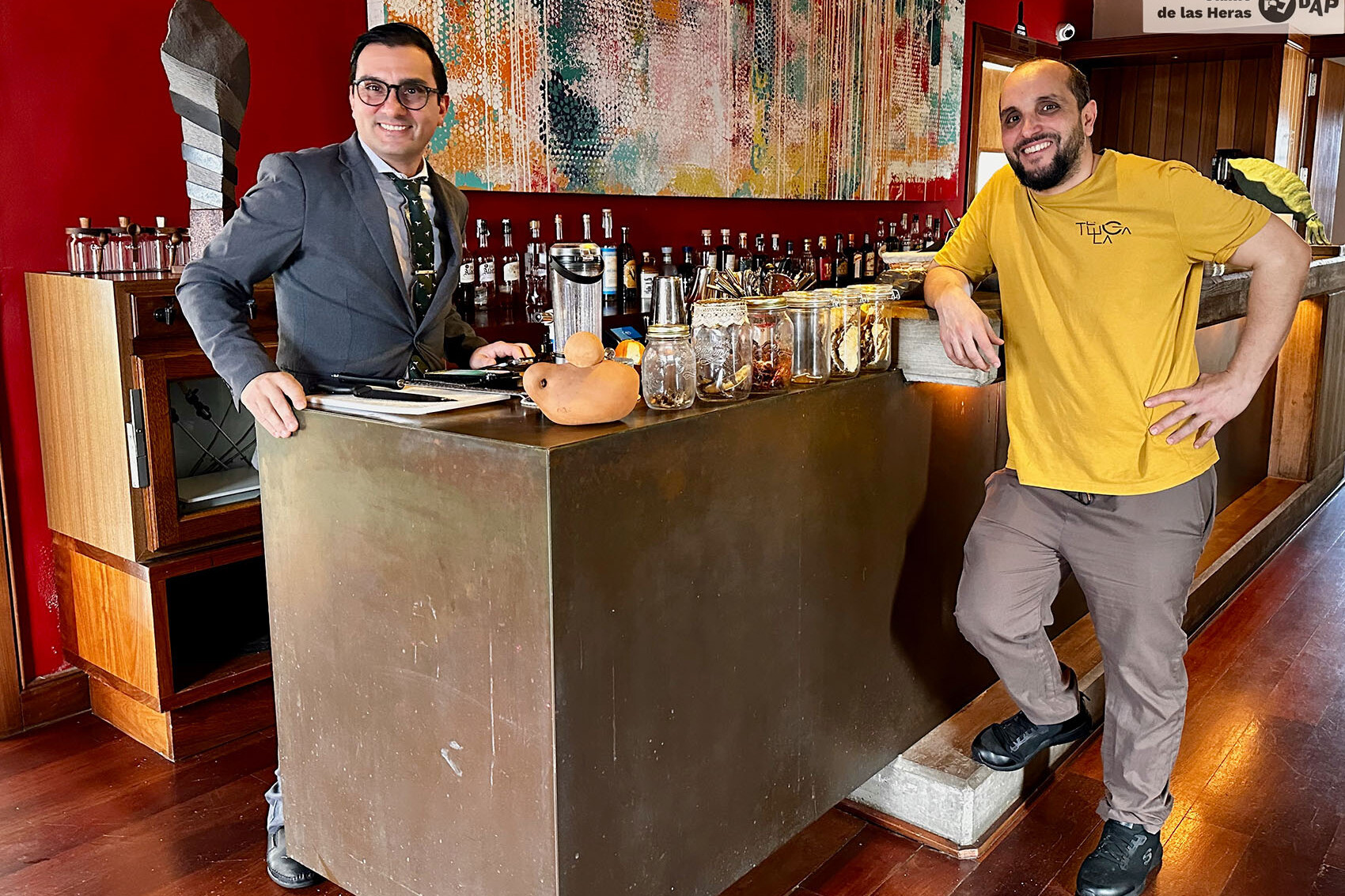 En 2023 volvió a La Tegala, ya por su cuenta y con plenos poderes, donde domina un salón que le permite llegar con suficiencia al servicio y mantener el listón. Allí, Jiménez propone viajar desde lo lanzaroteño con curiosidad, con trampantojos, con coctelería y con muchas referencias de producto local, incluyendo quesos y vinos, de los que se encarga el sumiller italiano –aunque con 20 años de permanencia en la isla– Sergio Mulas, que actúa como sumiller y jefe de sala.