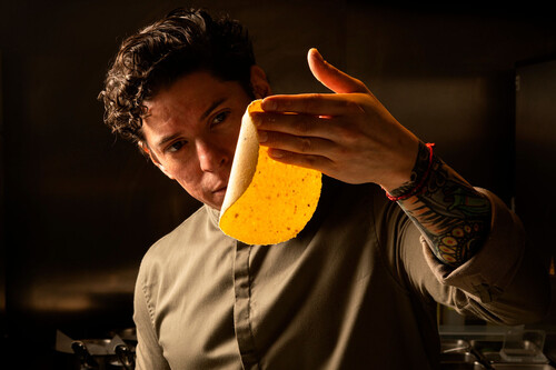 De hecho, el maíz —las dos variedades que utiliza— le llega directamente desde México, y es él mismo quien en el restaurante se encarga de todo el proceso, desde la nixtamalización hasta el molido y su conversión en tortillas, cerrando así un círculo gastronómico que le permite controlar al máximo cada fase.