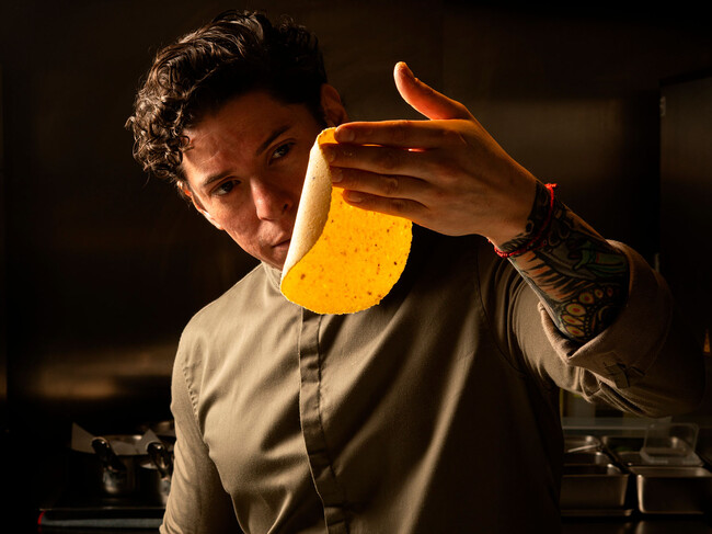 De hecho, el maíz —las dos variedades que utiliza— le llega directamente desde México, y es él mismo quien en el restaurante se encarga de todo el proceso, desde la nixtamalización hasta el molido y su conversión en tortillas, cerrando así un círculo gastronómico que le permite controlar al máximo cada fase.