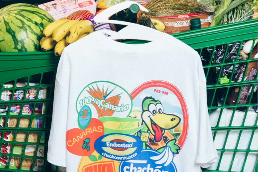 La colección está a la venta en la web de HiperDino de Gran Canaria con entrega a domicilio o recogida en tienda física. Para el resto de islas y Península se puede fichar en la web de Chacho Svnrs, donde está agotándose por minutos. La joya de la corona es esta camiseta oversize, que cuesta 35 euros y solo está disponible ya en el supermercado.