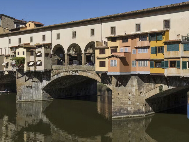 Lo más llamativo de todo es que el corredor pasa por encima del Ponte Vecchio, el puente más célebre de Florencia, ese que asoma sobre el Arno y que aparece en miles de fotos cada año. Aquí llega uno de los detalles más curiosos: en el puente había carniceros.
