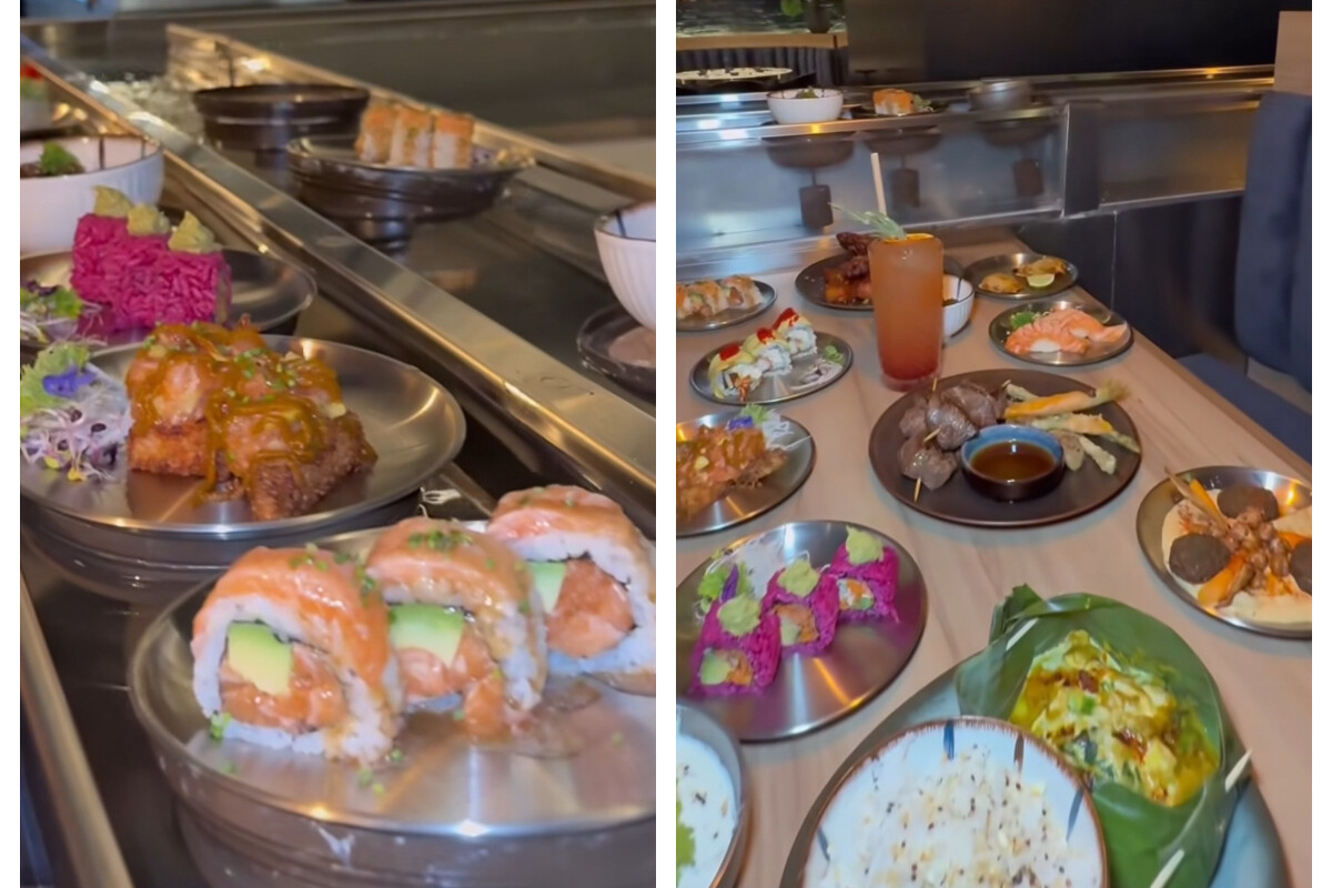 El comensal elige, hace el pedido y espera a que la comida navegue suavemente frente a él, un sistema sencillo que ha convertido el local en un pequeño espectáculo cotidiano.