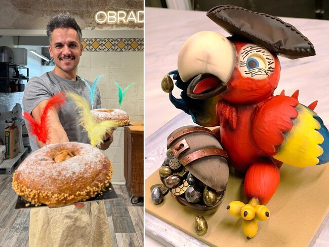 En la categoría de figura de chocolate, el vencedor ha sido Xavier Arevalo de Patisseria La Colmena, que ha preparado un divertido loro pirata bautizado como Jack Sparrot en homenaje a la saga cinematográfica de Piratas del Caribe, y que está acompañado de un cofre lleno de monedas de chocolate en lugar de los típicos huevos. Según ha confesado a EFE, “ya hacía tiempo que iba detrás del premio”, por lo que este reconocimiento le ha hecho “realmente mucha ilusión”.