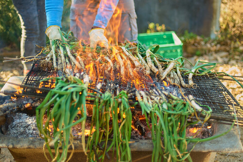 La comarca del Alt Penedès se ha convertido en uno de los destinos más valorados. Sus masías suelen contar con huertos propios y asan los calçots a llama viva, tal como marca la tradición. Tras sacarlos del fuego, se envuelven en papel para mantener el calor y se sirven en grandes cantidades, sin racionar.