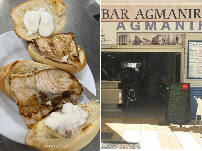 El montadito de aguja del Agmanir es uno de los bocados considerados imprescindibles por su clientela de toda la vida, pero que a un visitante novato le puede llevar a confusión. No es un montadito de carne de cerdo y mucho menos de ternera, pues se trata de una receta de pescado. Pero ojo, porque tampoco hay que esperar encontrar en su interior ejemplares de pez aguja o relanzón, popular conserva equiparable a las sardinillas también apreciadas en el mundo del aperitivo.